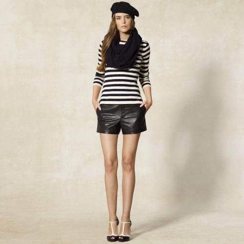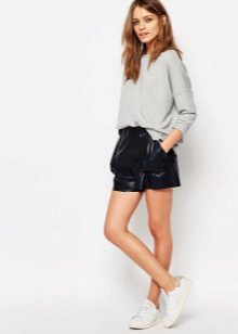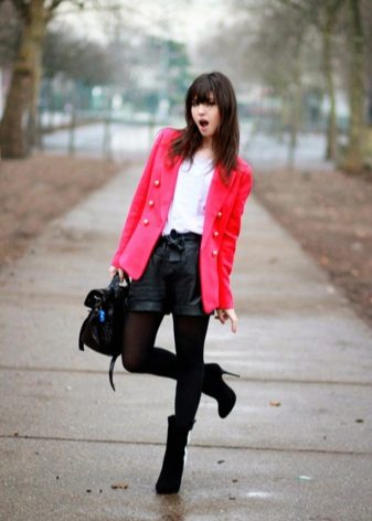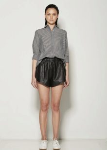 Models of artificial or natural leather look great with dark tights or golf. Well, if the shorts have cuffs that show from the "suede" side. Not only black models are popular, but also shorts made in pastel shades.