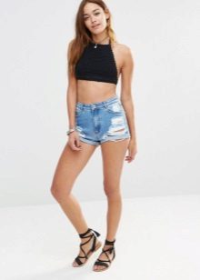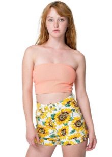 Still not going out of fashion shorts with a high waist, which are suitable for most types of figure. They look great with short tops, T-shirts and T-shirts.