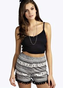 Popular shorts achromatic colors - black and white. They can be either monophonic or combined, for example, in a cell or in a strip.