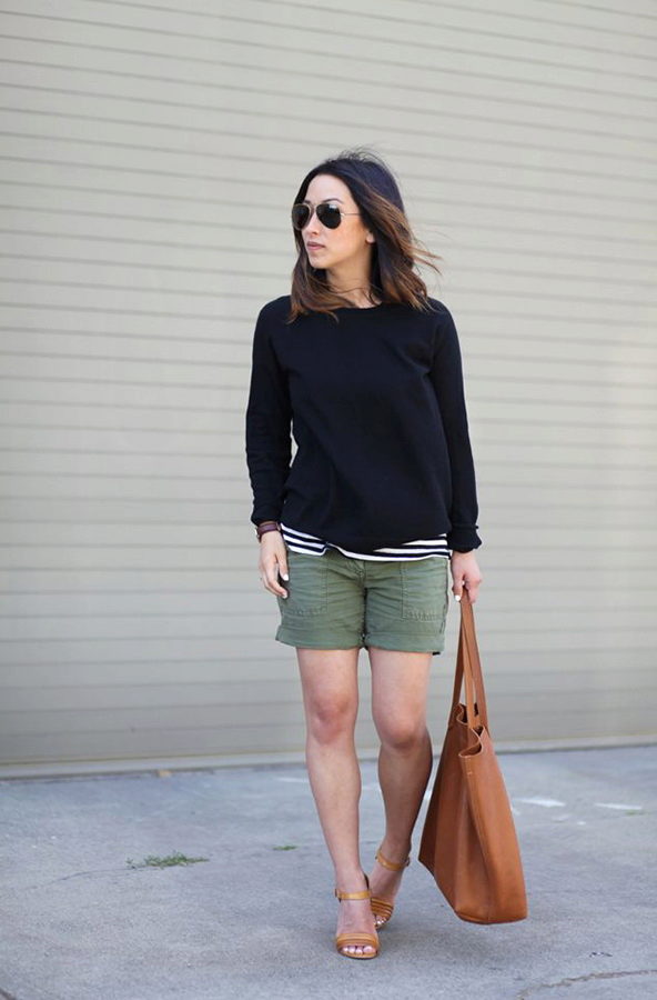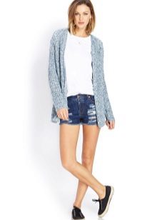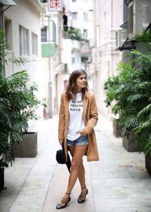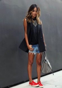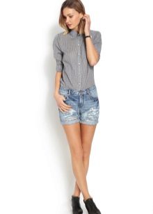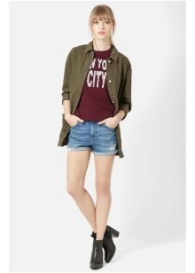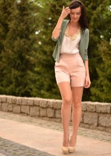 Shorts can and should be worn with a stylish top or T-shirt. Many people like to complement this tandem with the third thing, so that it does not look boring.For example, wearing shorts and a top with a shirt, you get a stylish and interesting image.