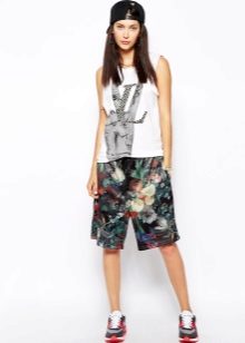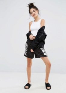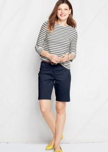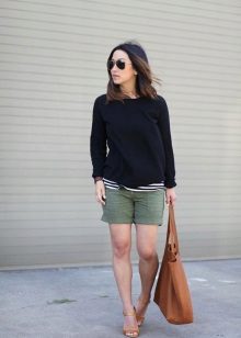 - If your problem part is a rounded tummy with relatively slim legs, pay attention to shorts with low waist. Avoid tight-fitting models that emphasize the volume top, give preference to moderately free shorts. However, they do not have to be long, the options will be the length of the mid-thigh.