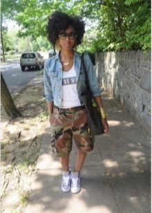 Military-style shorts are also called cargo, as are trousers of similar style. Their distinctive features consist in a cut and a coloring. Often there are models with patch pockets on the sides. The color range is olive, marsh, gray, sand, khaki and traditional camouflage print.