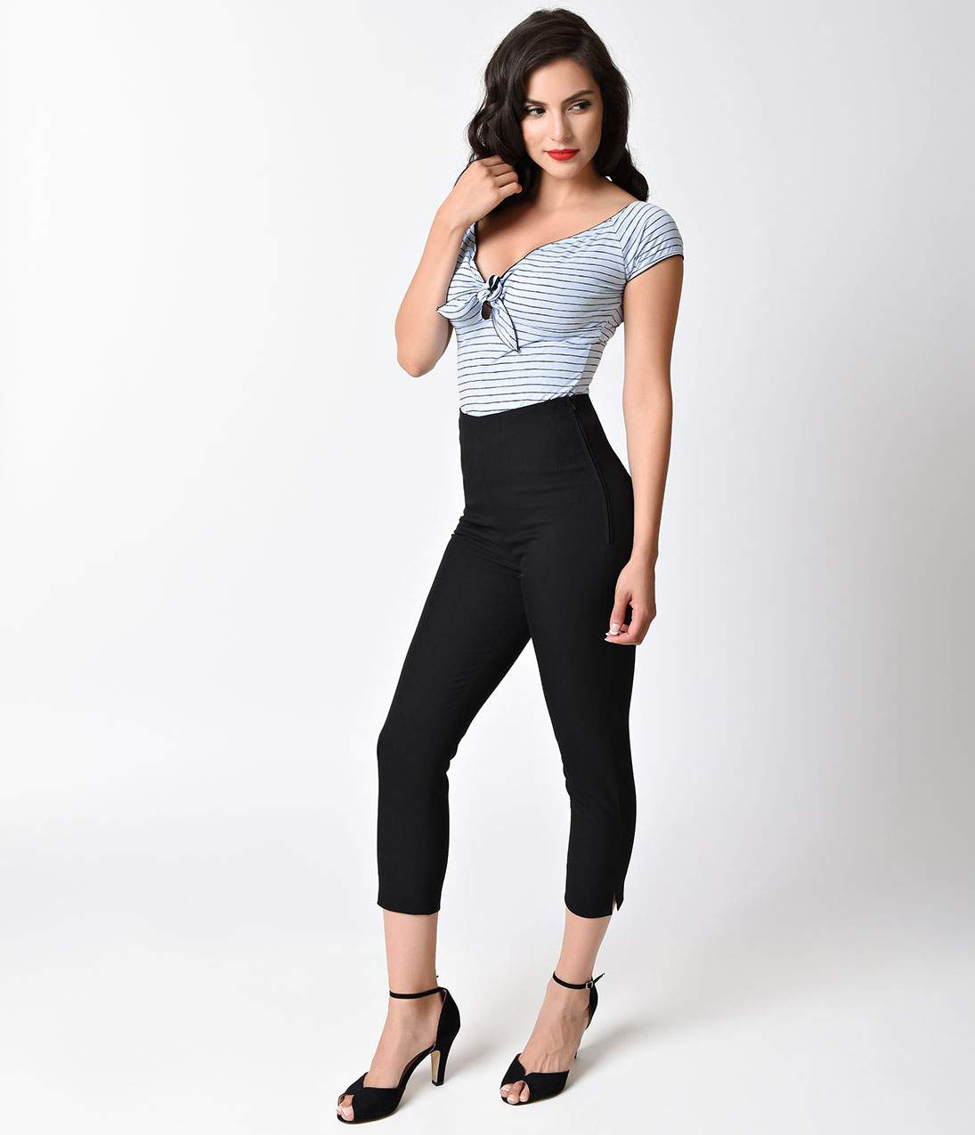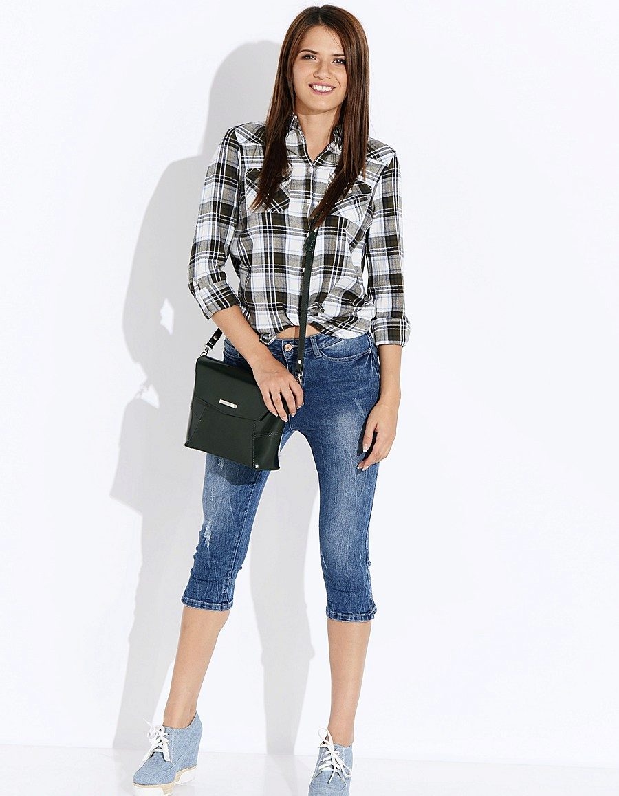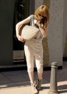 Capris are often referred not to shorts, but to pants, since they are rather long, reaching approximately the middle of the calf. Capri are found in everyday and business wardrobe, they are combined with sports shoes, sandals, boats.