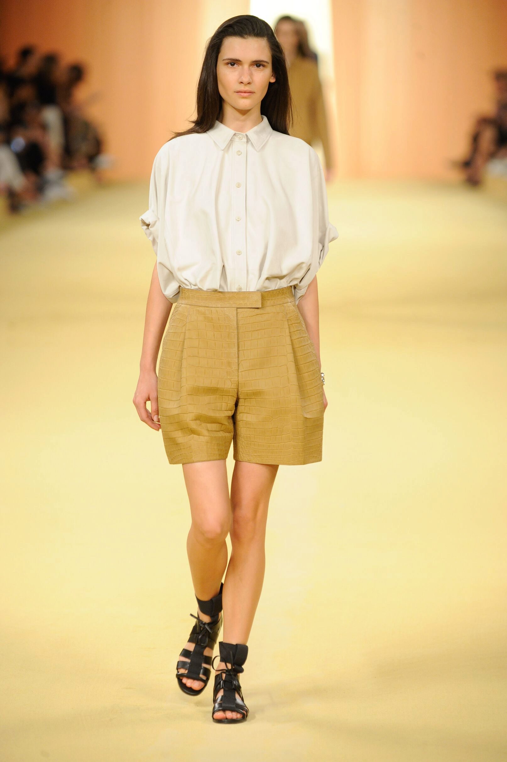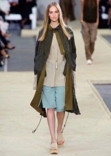 Shorts in the colonial safari style are models of riding breeches, wide in the hips and narrowed to the bottom. There is a mini length and length to the middle of the knee (Bermuda shorts). The color range is soft, olive-sand.