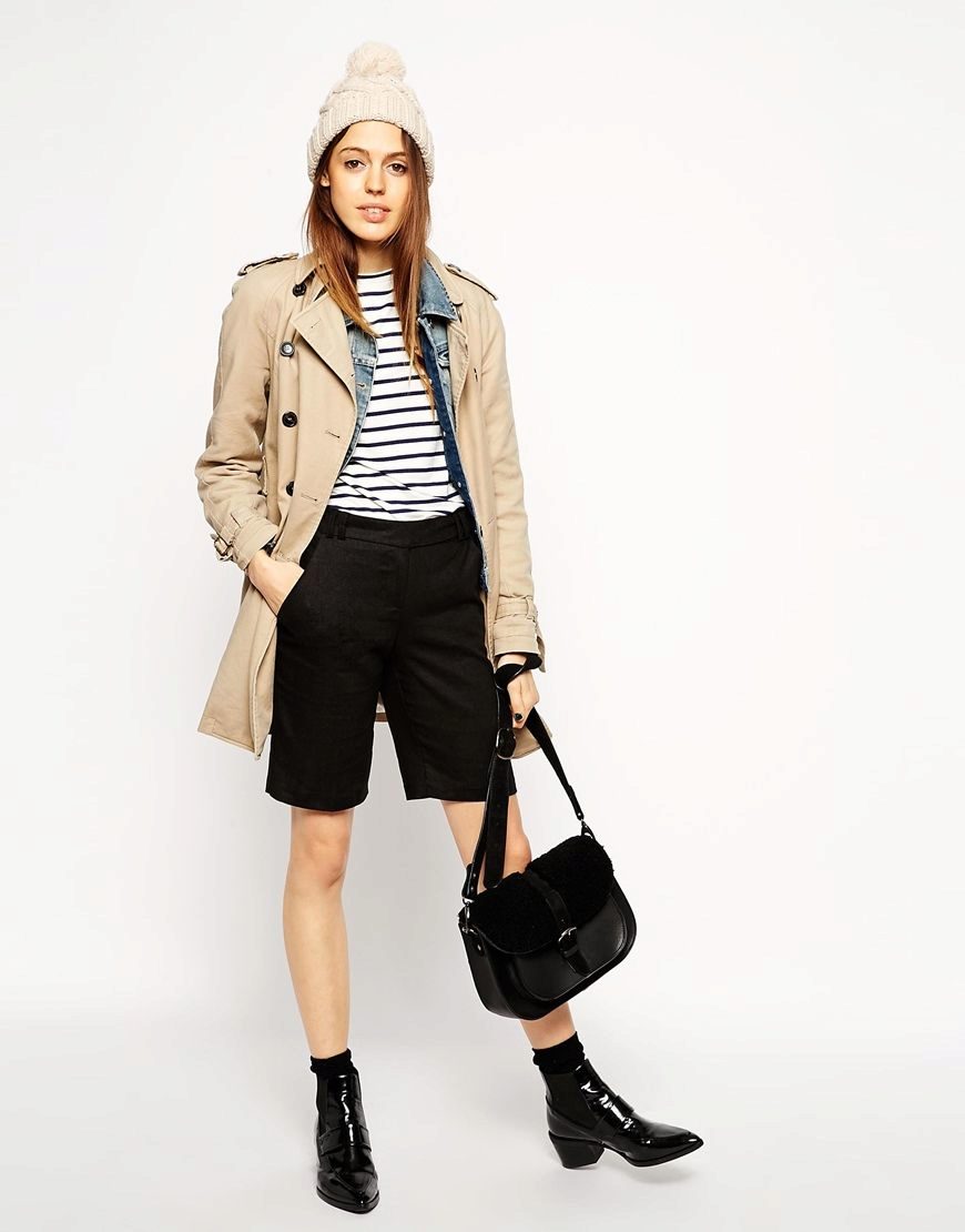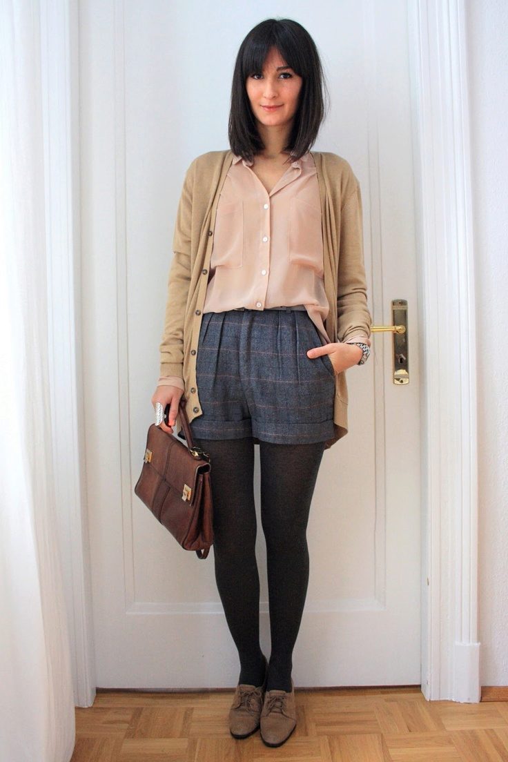 Long shorts can be worn to work in the office, and short ones are suitable for parties. Usually they are sewn from woolen and half-woolen fabrics, therefore, in combination with tights, they are not much inferior to trousers. Give preference to models of sufficiently free cut so that they do not look as if you chose a thing that is not the right size.