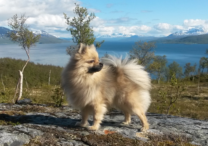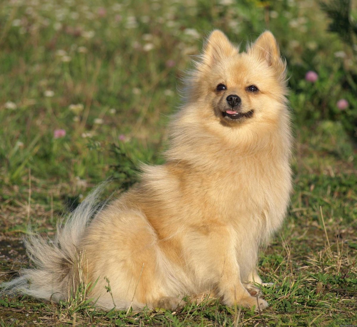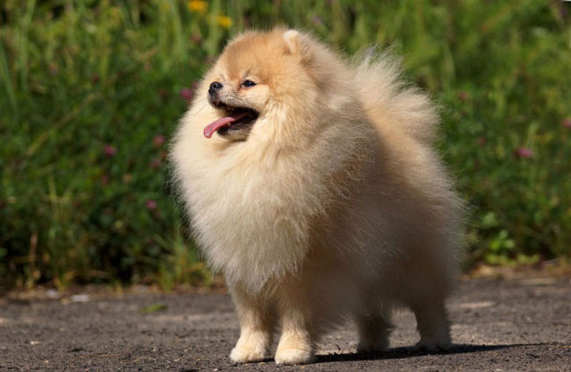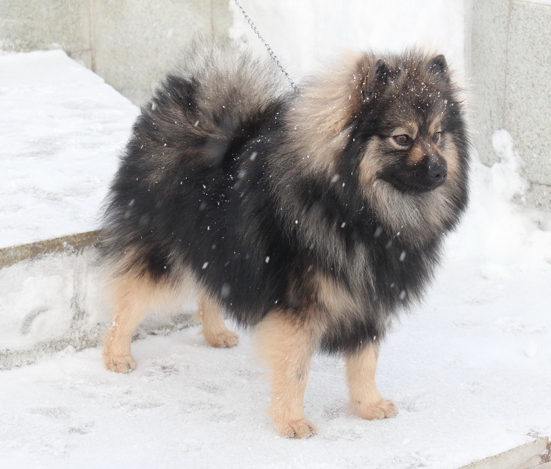 Spitz dogs running on a leash look like fluffy balls. The exterior features of dwarf, small, Wolfspitz and Sphinaria are almost the same, their difference lies in height and weight. Each of the subspecies is characterized by a long straight hair, which has a thick undercoat. The ratio of body length to its height is 1 to 1. The muzzle of the dog is not characterized by excessive elongation, it can be bearish or fox-like.