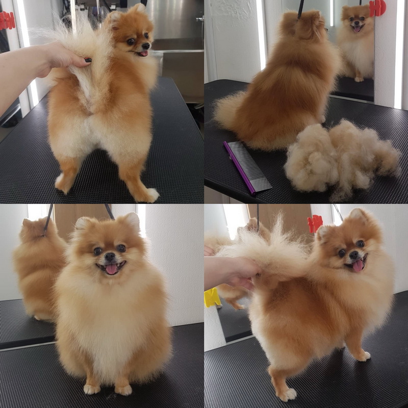 Due to the peculiarities of German Spitz wool, the host can cut it as he pleases. A shorn pet can look like a lion, a fox, a bear cub, bows and butterflies can be fastened to the fur. According to generally accepted standards, the fur should be shortened to a minimum.