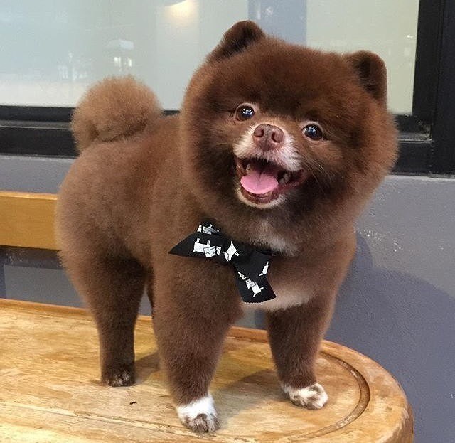 - Under the bear. Otherwise, this haircut is called "under Boo." Boo is a dwarf spitz who became a Facebook star a decade ago, and the whole Internet. He was very much like a plush toy, and soon Boo had many imitators. The following hair features the haircut Bu / under the bear: the round head (the ears are flush with the nape), short hair on the body (one length), short hair on the legs (for roundness of the shape). In the end, the dog will turn out like a poured teddy bear. But only with such a cute spitz-dog she can't participate in contests.