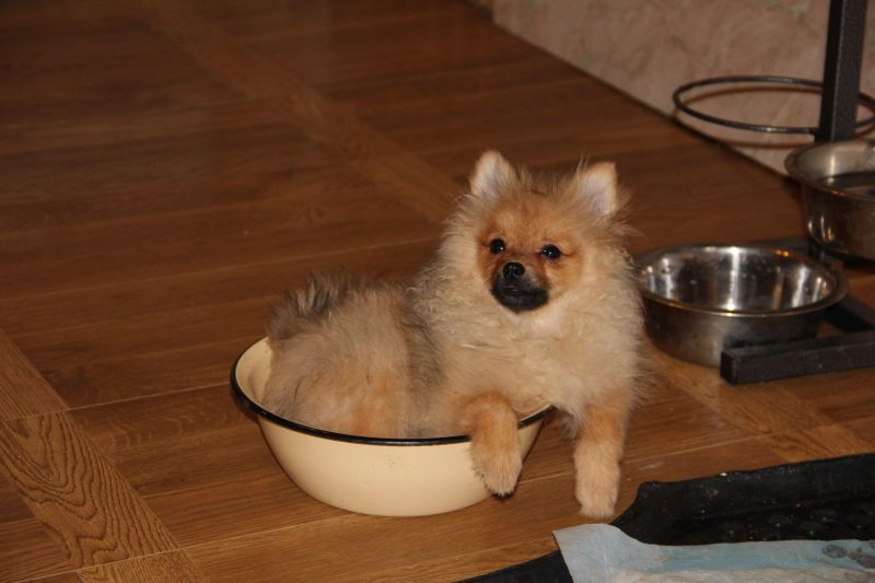 Before taking a Pomeranian Spitz puppy into the house, you need to prepare for it a personal “home”, convenient dishes for food and water, a tray, special hygiene products, brushes for combing wool, including high-quality puhoderka. It is advisable to purchase for the dog special scissors with rounded ends, muzzle and ear drops. All these accessories should be purchased with a guide to a small puppy of a small breed.