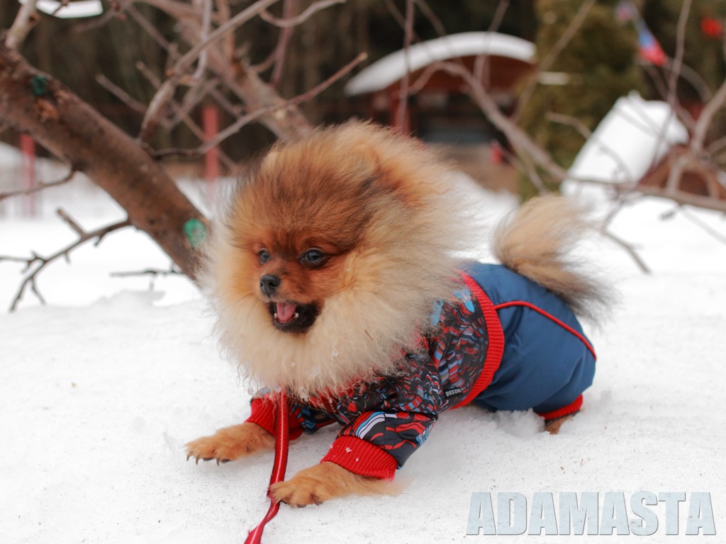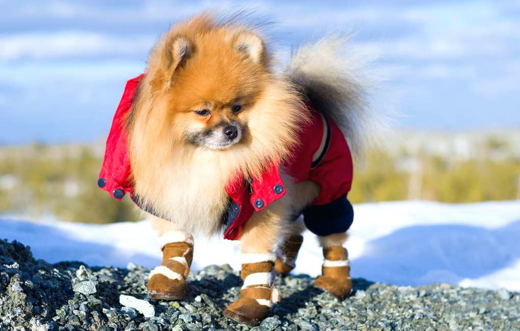 Under the scorching sun Pomeranian to be unacceptable because of the risk of heat stroke. In rainy and windy weather, you need to walk, but you need to wear a special dog overalls to the baby. So it will be possible to save the pet from colds.