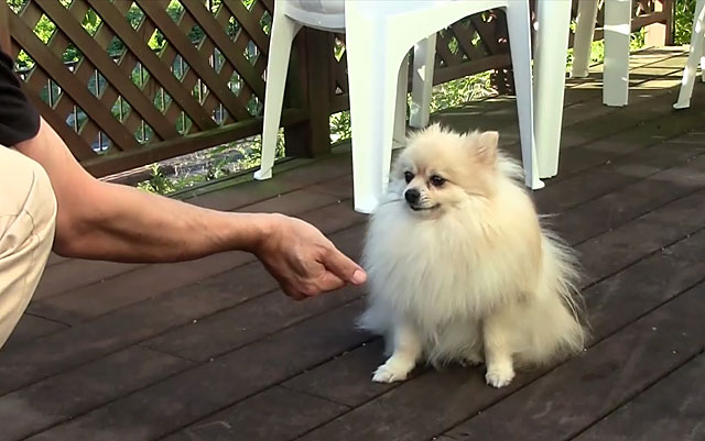 - Team "Voice!". She needed to teach Spitz to bark only on the case. “Prize” is given to smell, and then they raise their hand, uttering the right word. When the dog yelps, hand the promised.