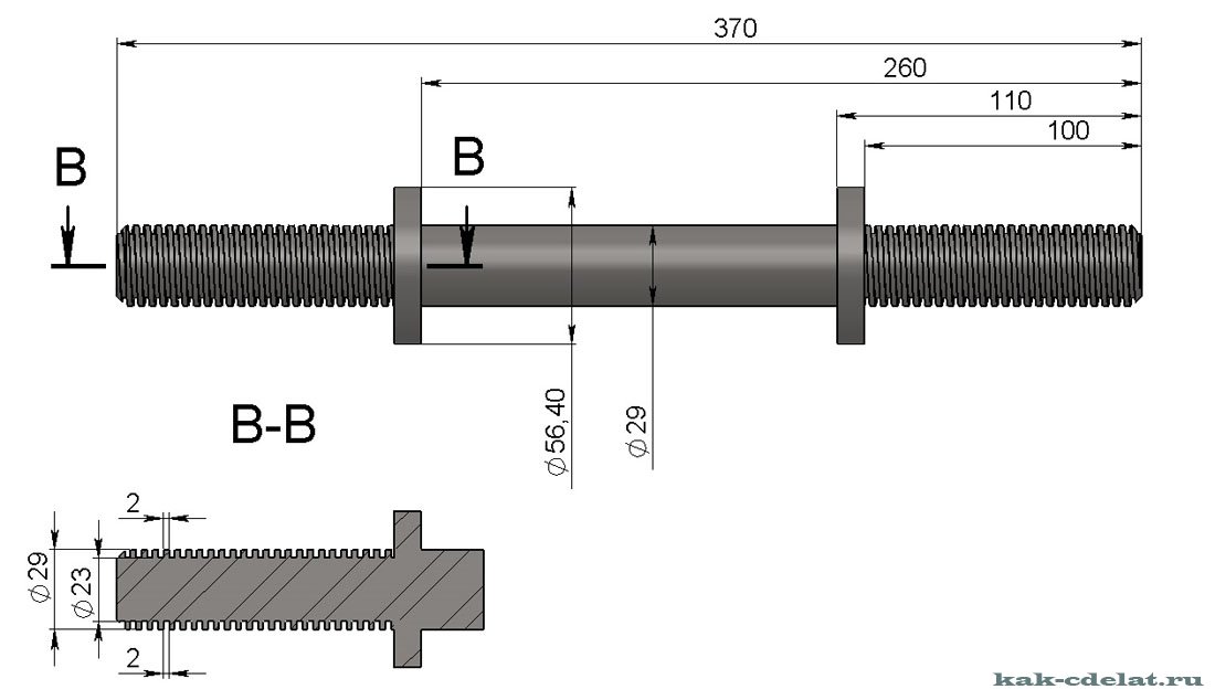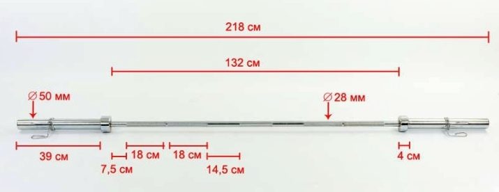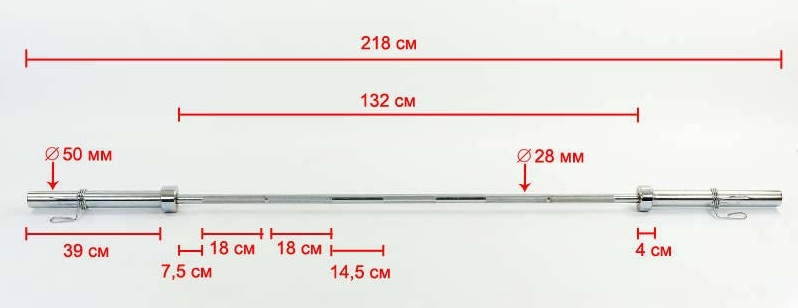 This rod carries a slight difference with the Olympic: the length of the rod is 2200 mm, but the thickness is 29 mm, and the mass is 20 kg. Able to withstand a decent load.