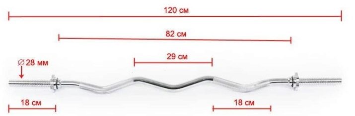 - W-shaped - more curve, and this forms an additional possibility of transferring the main load on the triceps muscles of the shoulder. The most comfortable combination of "French bench" and other similar techniques.