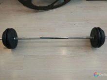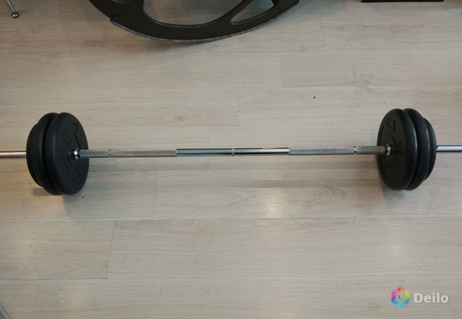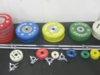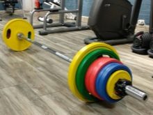 The projectile neck has a length of 2 m 20 cm and weighs 20 kg, its diameter being 2.8 cm and the width of the landing sleeves is 5 cm. Products are equipped with pancakes weighing 0.25, 0.5, 1.25, 2.5, 5, 10, 15, 20 and 25 kg, the weight of the lock is 2.5 kg. Here it should be noted that the diameter of pancakes weighing 10 or more kilograms is 45 cm. There are two types of discs for Olympic bars: rubber coated and uncoated the latter are intended solely for powerlifting.