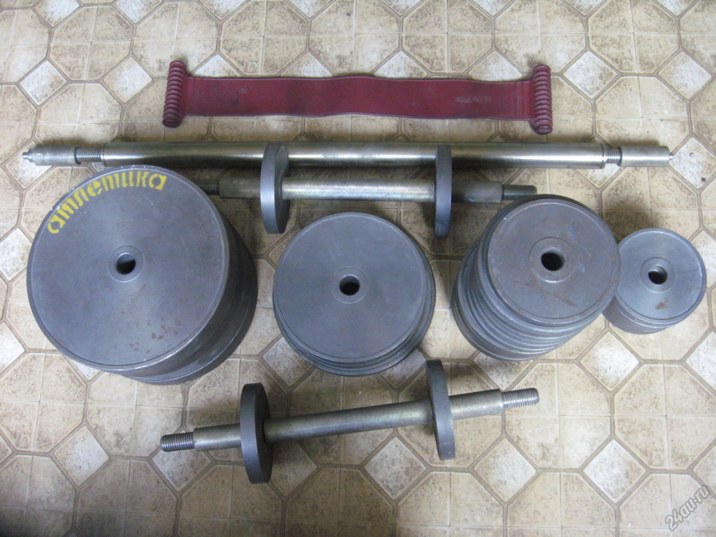 The modern bar is a steel neck, at the ends of which there are movable sleeves designed for putting pancakes on. From the outside, pancakes are fixed with a special locking mechanism, which prevents them from falling off the rod and additionally weights the projectile.