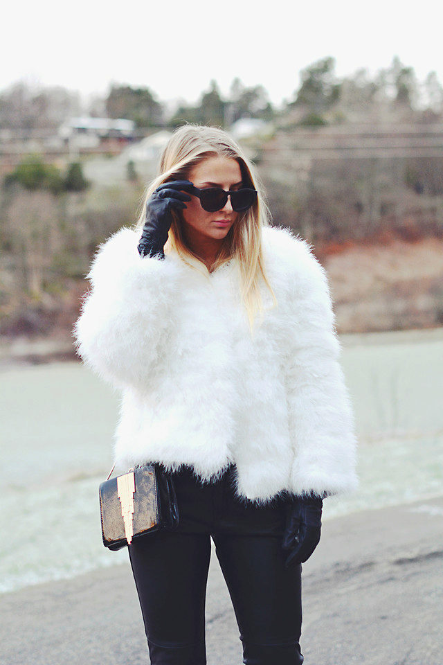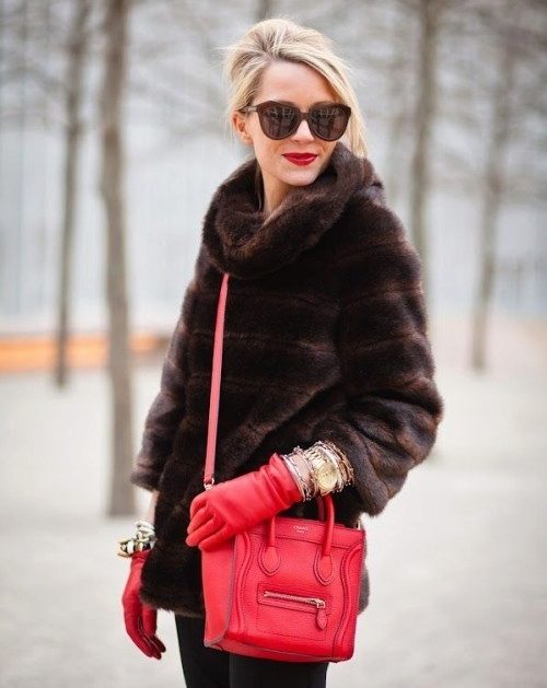 Leather gloves look good in combination with autolady fur coat.