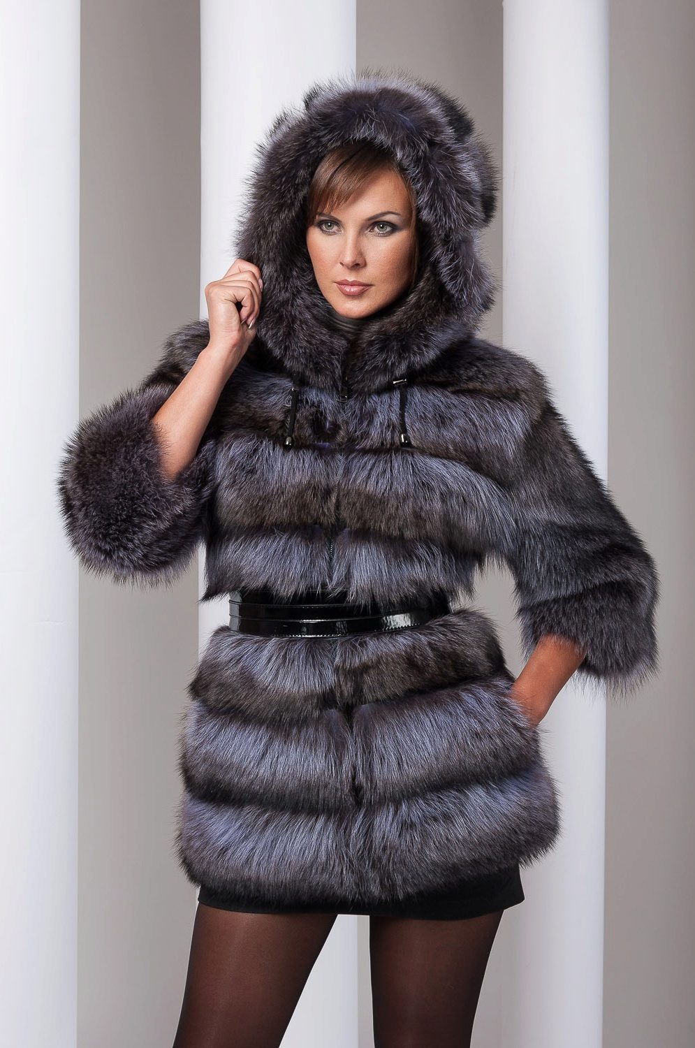 Trapezoidal cut of clothing visually makes the figure more elegant. Shortened models of fur coats with a belt look best on a girl with a slender figure with height above average. Although on some models the slim silhouettes favorably emphasize the femininity of the figure, even in women with non-ideal proportions.