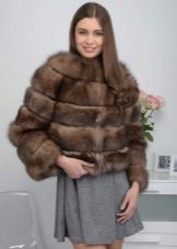 The version with a short skirt also deserves attention. Outerwear in its style is more a fur jacket than a fur coat, which is also appropriate for the girl behind the wheel. The jacket of thin transverse fur stripes is zipped, has a neat little collar and sleeves of classic length. The ensemble perfectly complements the tight black tights and shoes with a steady heel. In general, the image of a purposeful business woman.
