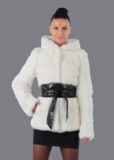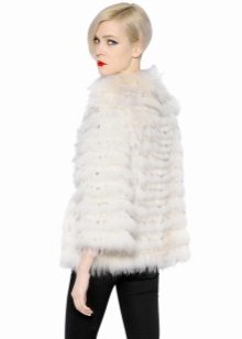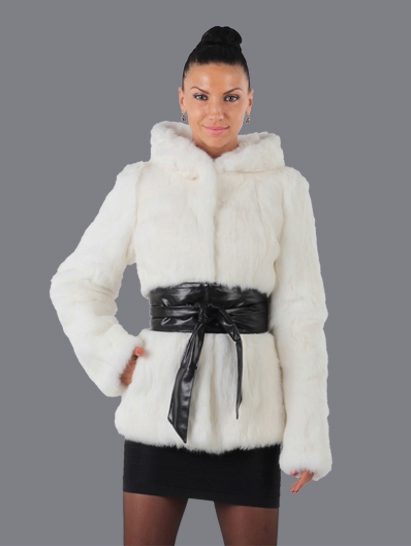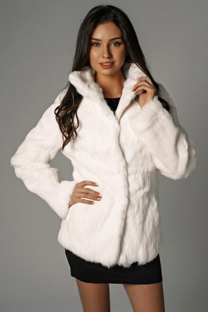 This model will suit young girls who prefer a modern style in clothes. Fur color may be different, but the most preferred shades are gray, white and black. A short rabbit jacket will warm you in the winter, at the same time it will not grow up.
