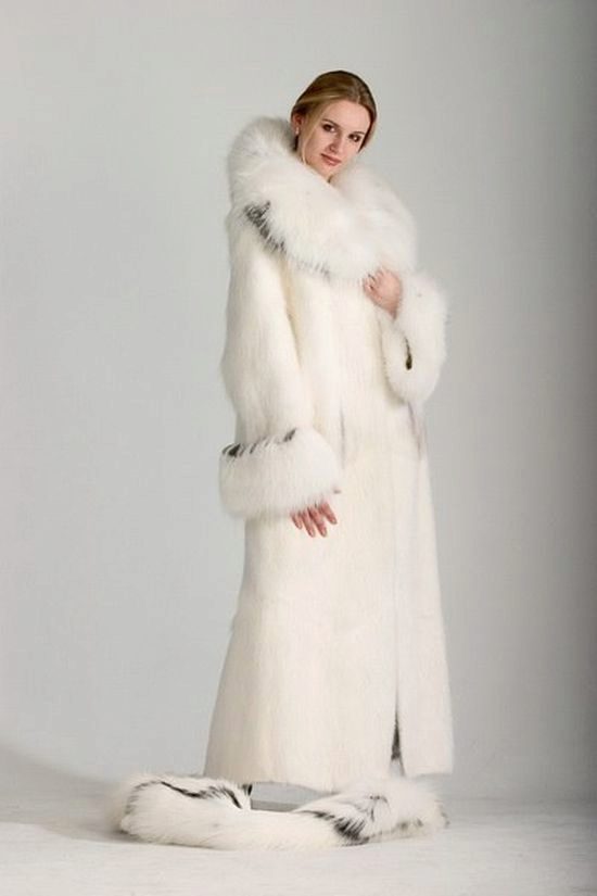 A luxurious fur coat that makes an instantly stately woman out of any woman. This model is preferable to choose more mature women. Fur coat to the floor can be of different cut: