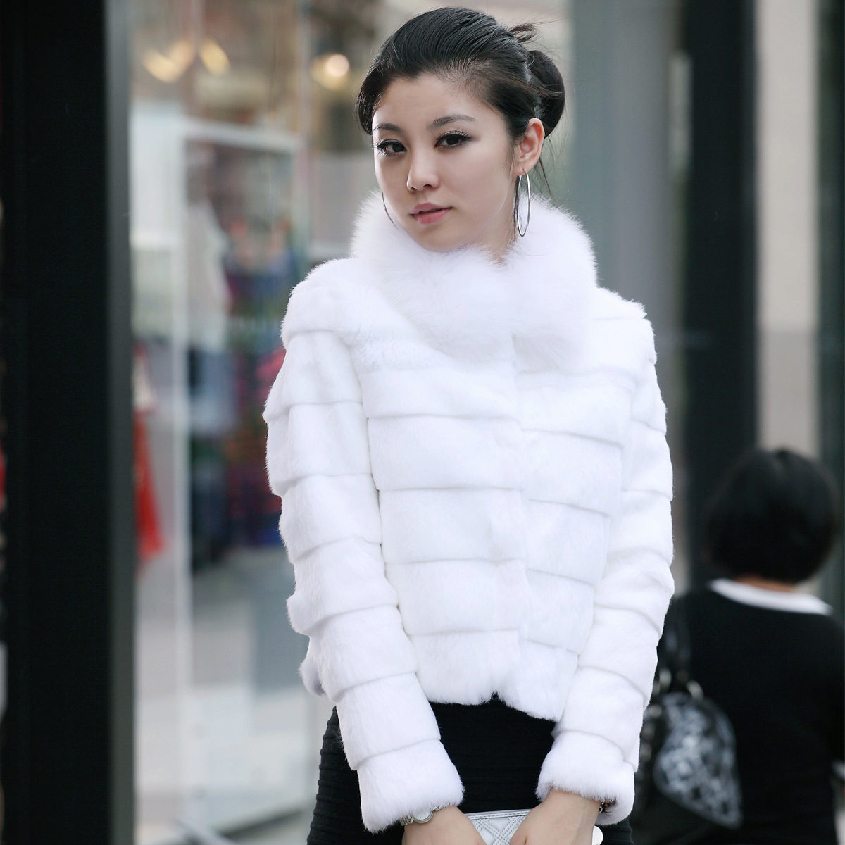 Short rabbit fur coat