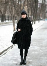 And here is the long black coat, which was discussed in our article. Agree that she looks great. In such clothes at least go to the royal reception. Simple style, deep color, easy flaking of the hem and discreet decoration on the sleeves - this is it, the secret of the perfect fur coat.