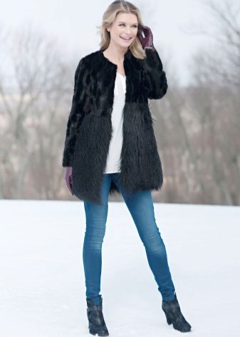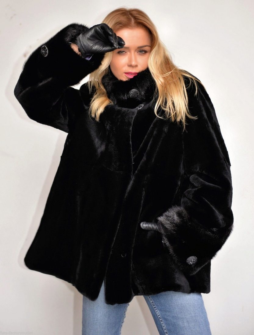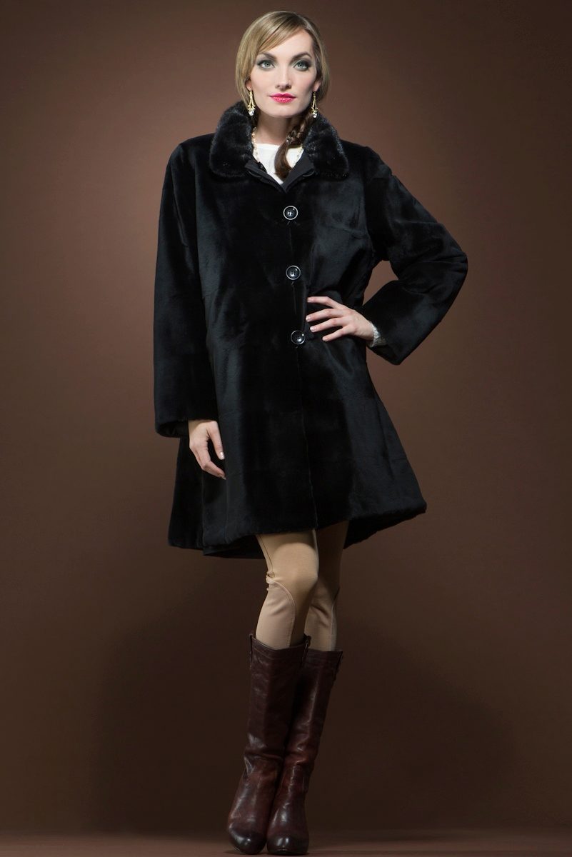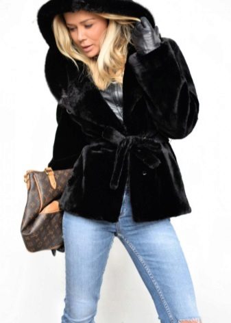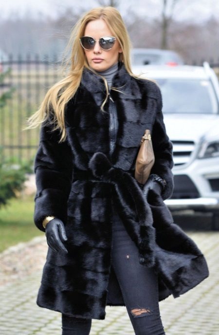 Short fur coats in black have become a trend, especially for active business women. In such a fur coat it is convenient to move, it is not easily soiled, and it also perfectly emphasizes the slimness of the legs.