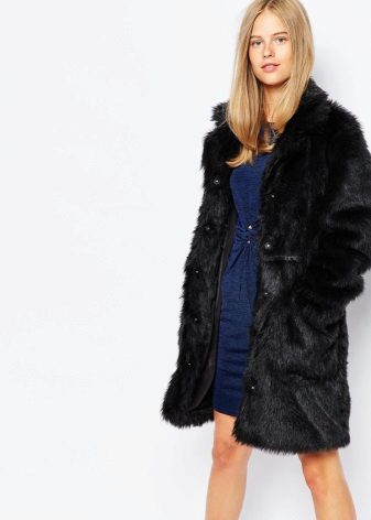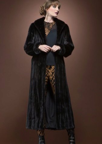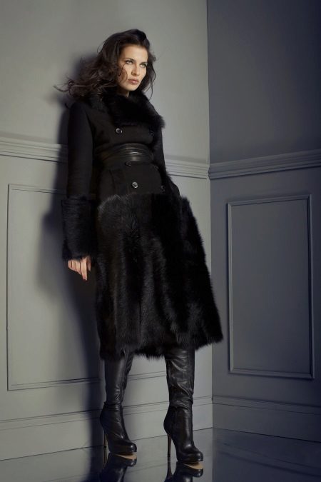 Long options always and remain an integral option for an evening look. They dress on special occasions, combined with evening dresses. Such a fur coat remains a subject for pride. In such models, excessively fluffy fur is unacceptable, and it can not be created from small pieces, otherwise the weight of such a fur coat will be impressive. It is the best of all to create long black fur coats from a mink or a shorn raccoon, designers perfectly know about it.