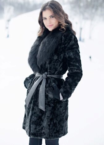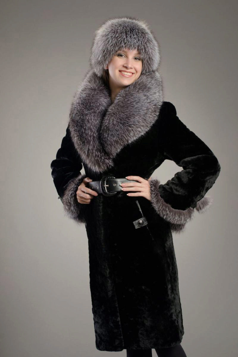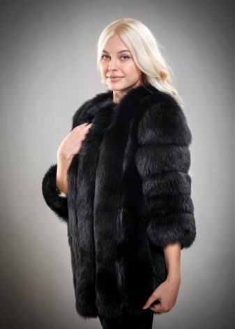 Black skins made from beaver and fox fur are more affordable, but still beautiful. The first version of the fur is characterized by a light structure, which makes the clothes almost weightless, the nap is not long, thin, but this does not prevent the fur from being warm. But the fox fur has long hairs and thick underfur.
