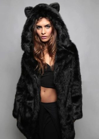 - The hood in a fur coat plays a special role, not only decorating her, but also warming the hostess. Such elements are usually not detachable, have a free construction, are rather bulky and warm. Often the hood carries a contrast of color or texture.