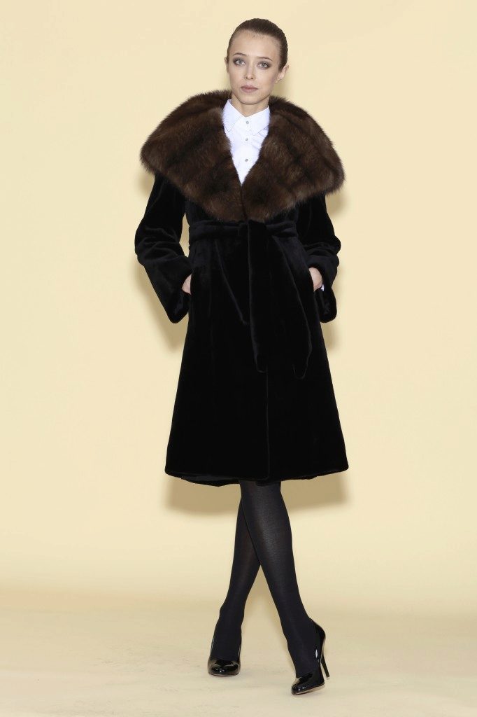 - Stand collar in black fur coats more and more often found at fashion shows, chosen by girls and women, remains a relevant element, a fashionable interpretation of the classical style.