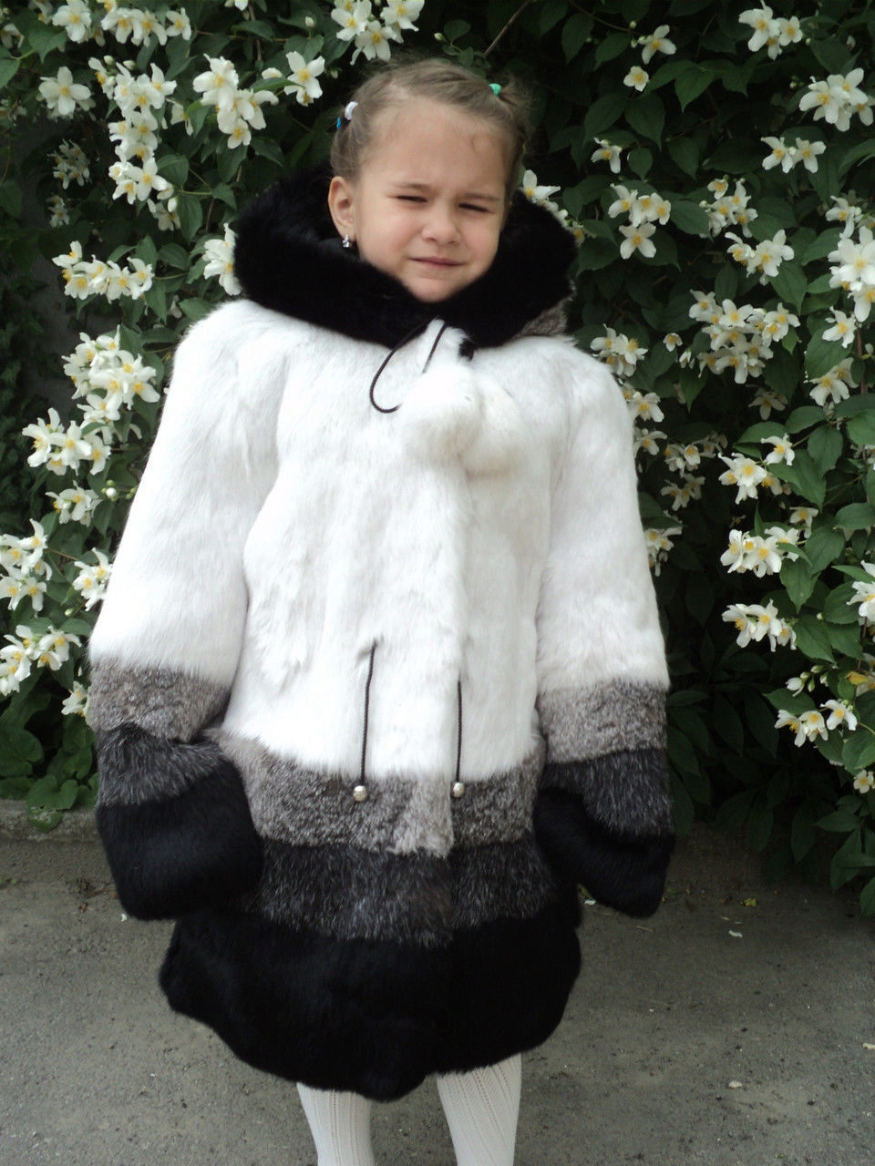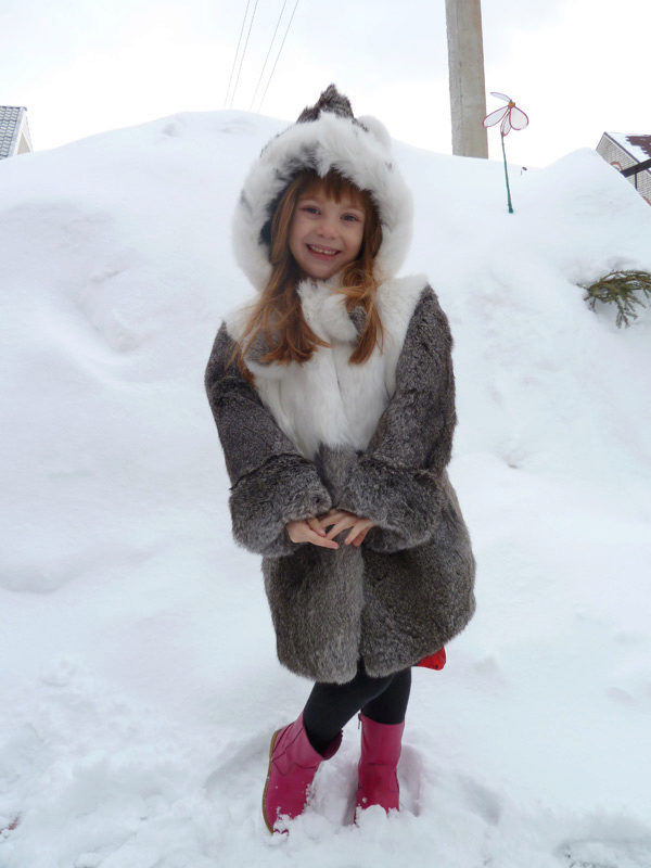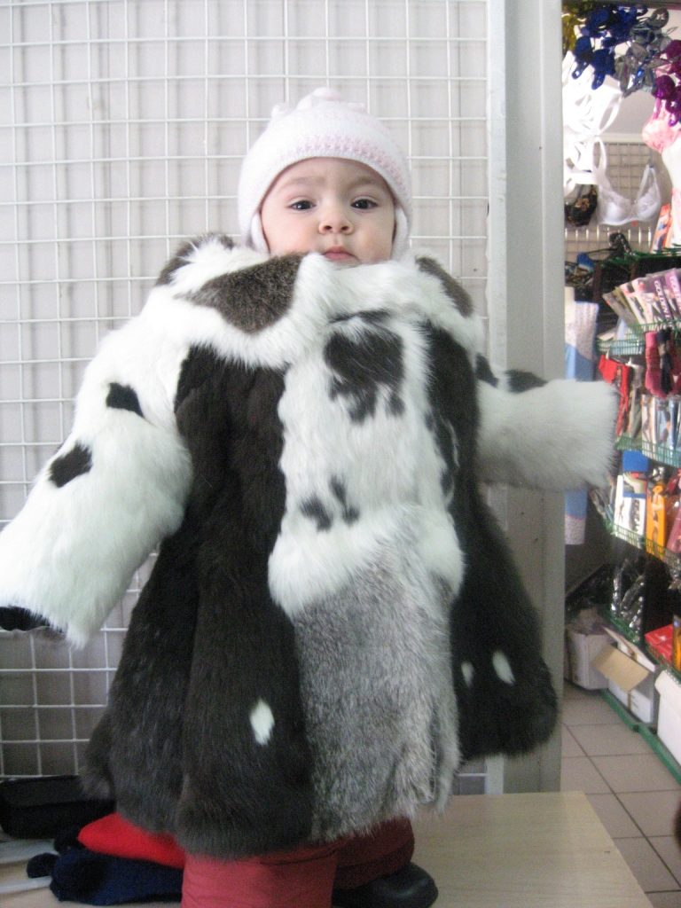 One significant limitation is connected with the ease of the fur structure: due to the “weightlessness” of the rabbit fur and the core, the finished product is not intended for use in severe frosts: a child in such a coat will feel uncomfortable on the street after some time. Therefore, if you plan a long stay in the fresh air at serious sub-zero temperatures, the owner of such a fur coat should be additionally equipped with a warm jacket or a knitted sweater.