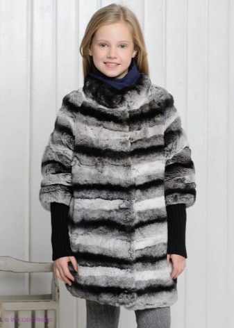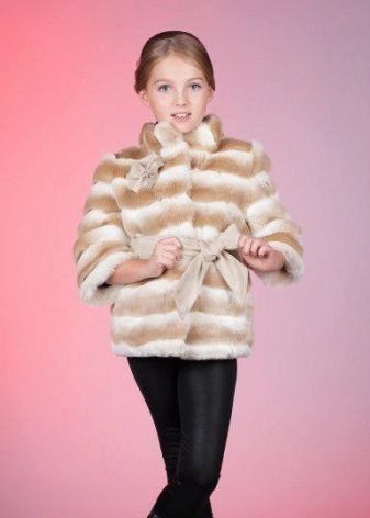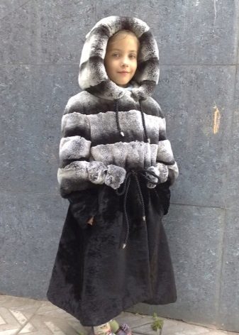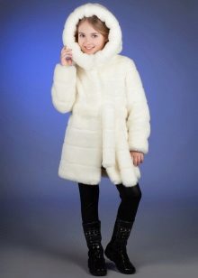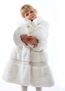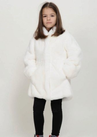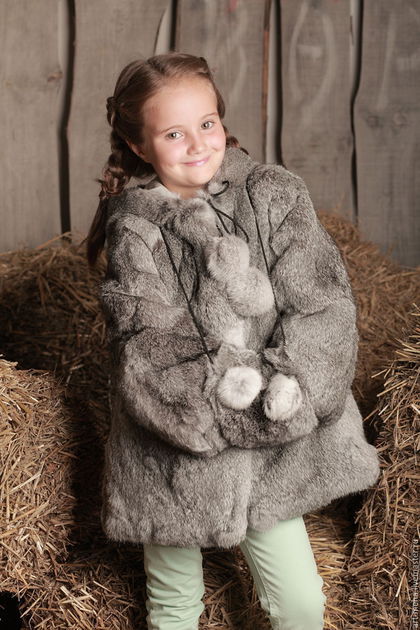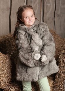 Rabbit - one of the most common furs, which is used to create children's outerwear. The most attractive are the free models with a hood. The optimal length for such models is average. On the waistline can be located drawstring. For the little fashionistas, the best fur coat cannot be imagined.