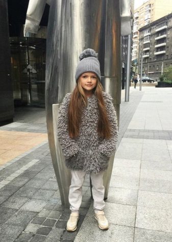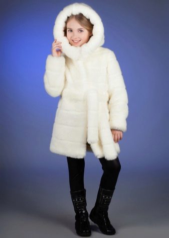 Most often, girls' coats are chosen of medium length, which ends between the knee and the thigh.In such clothes it will be convenient to move, sit and even play. If you pick up high boots for such a fur coat, then the child will be reliably protected from the cold.