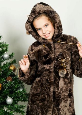 When choosing the length of the future coat, it is important to consider the degree of activity of the child. Every day for walking in the fresh air and active games, you can choose a fur coat that will cover the hips, but not reach the knees. For a festive look, a coat with a length at the knee level would be appropriate.