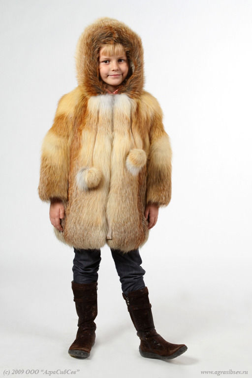 Fox coat - another option for children's clothing. This fur is also long-haired and requires special care, which will extend the life of the fur product.