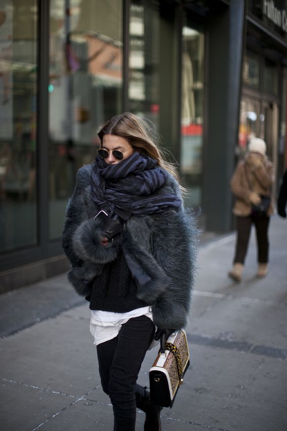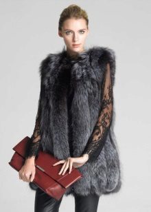 Long fur vests have been popular for several seasons in a row. If you wear it solo, as an outerwear, complement the image with high suede or leather gloves.
