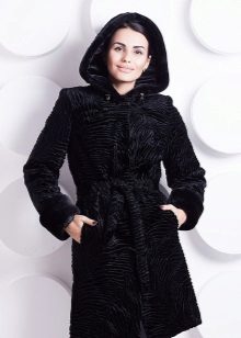 A chic eco-fur fur coat with an astrakhan fur will look good on girls with any type of figure. Its main feature is that such a fur coat does not completely fill its mistress, which means it will suit even ladies with uniforms.