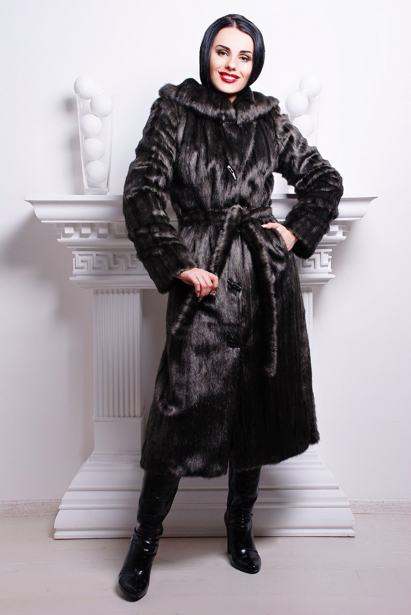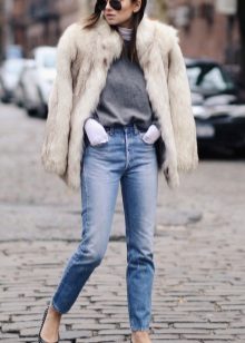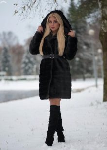 To emphasize the elegance and slimness of the figure, wear a fur coat with a belt and shoes with heels.
