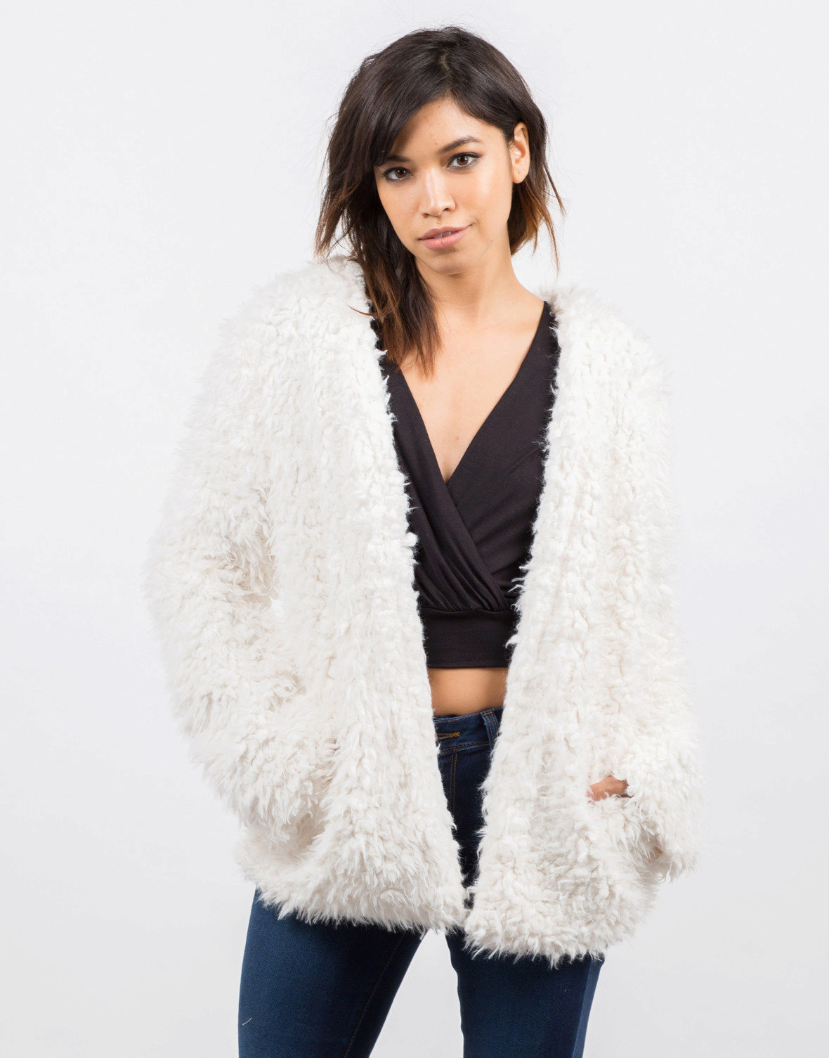 Short straight models remain relevant from season to season. They are suitable for young girls who are not afraid to show their figure. If you want to stand out, a shortened fur coat from eco-fur will definitely please you.