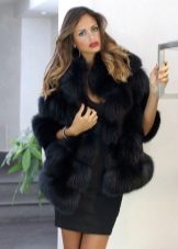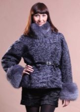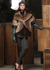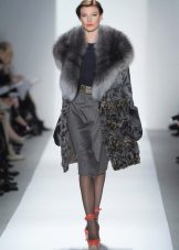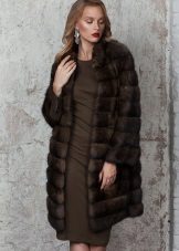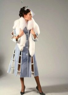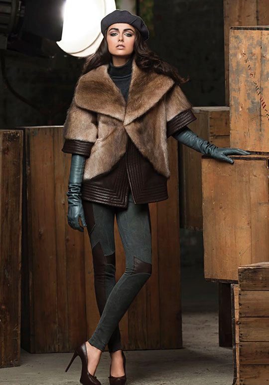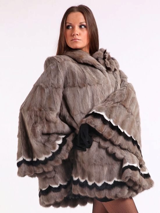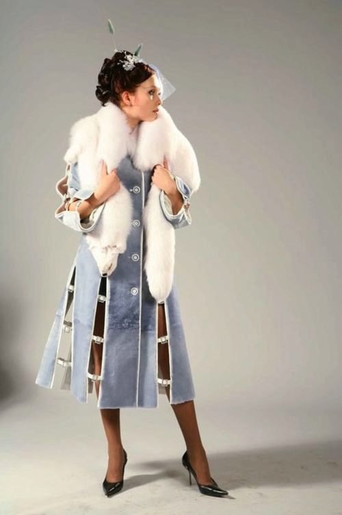 This amazing jacket of sapphire-colored mink was born at one of the Kirov factories. We could not get past this model, because it is beautiful. Silvery flounces with interesting geometry repeat lines of decor remarkably clearly and are perfectly combined with a straight silhouette. This form of the collar is now gaining popularity, so this model will remain relevant for a long time. Mink goes well with the skin that was used for inserts.