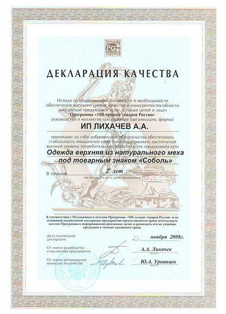 The Sobol Factory is confident in the quality of its products, therefore it provides a guarantee for its products for a period of 1 season, as well as post-warranty maintenance of its fur products.