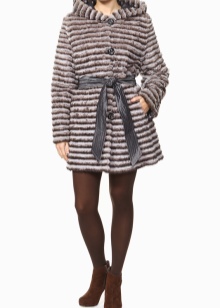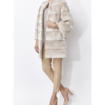 Typically, models that harmoniously combine several colors, like spectacular and bold girls seeking to attract attention. An excellent solution for a girl with a slender figure will be a fur coat of a straight silhouette, a length slightly below the knee and combining three colors.