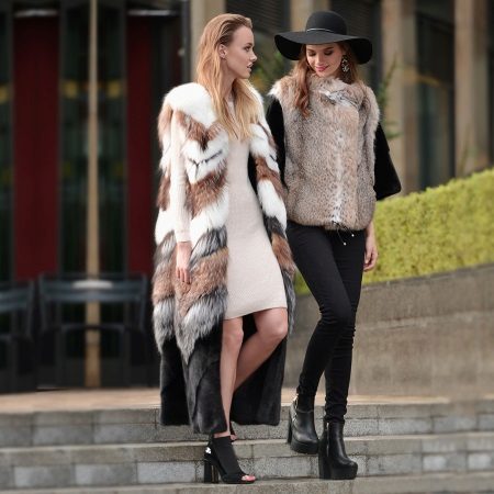 Models of combined shades that combine different colors of one type of fur or several varieties of them are also very popular.
