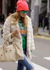 - Choosing a headdress, and it can be a knitted hat, a scarf or a hat, pay attention to the fact that its color should be in harmony with the fur coat.