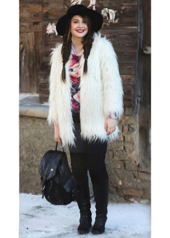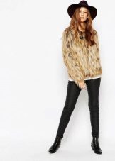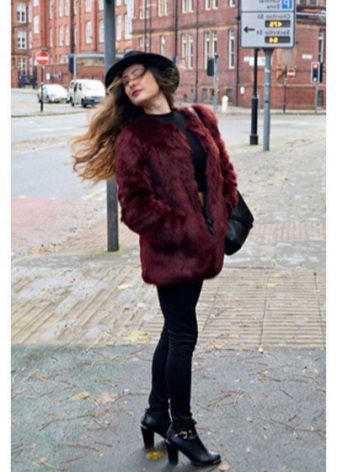 - Leggings “under the skin” and a T-shirt are perfect for a fur coat with a long nap to mid-thigh, and if you prefer a feminine style, then wear a flowing dress and ankle boots with high heels.