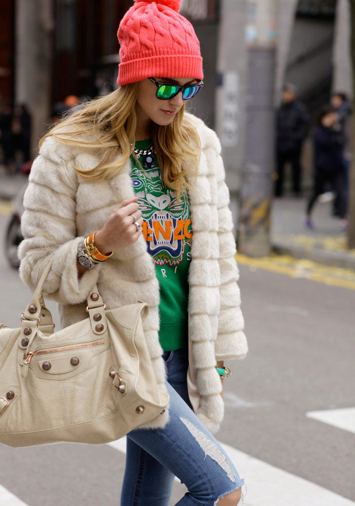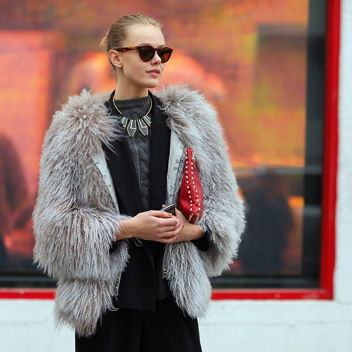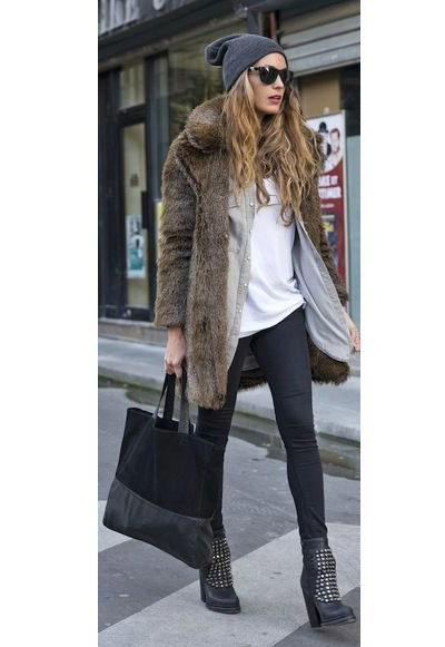 - It is best to wear a fur coat overlaysize to create a harmonious image with skin-tight things, such as tight jeans.