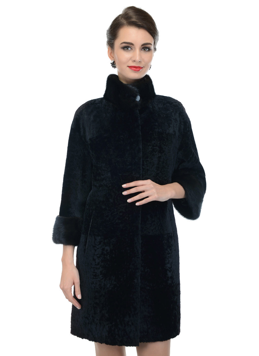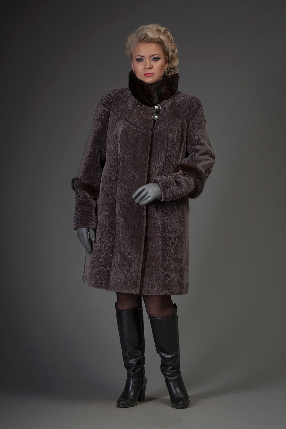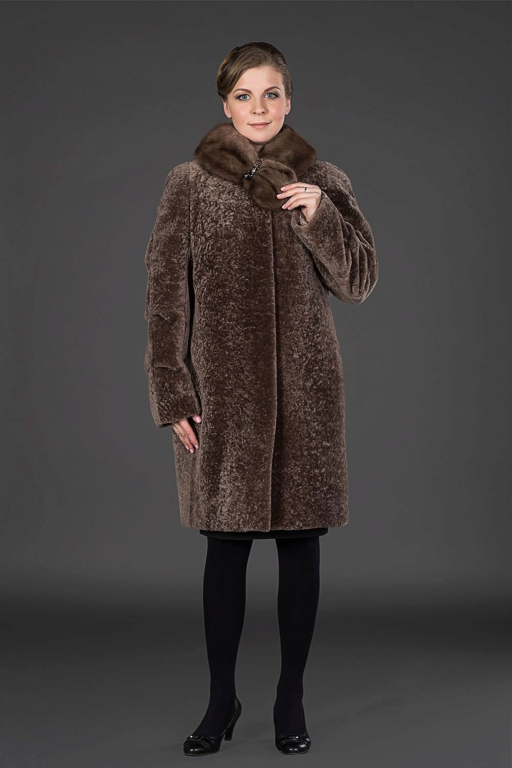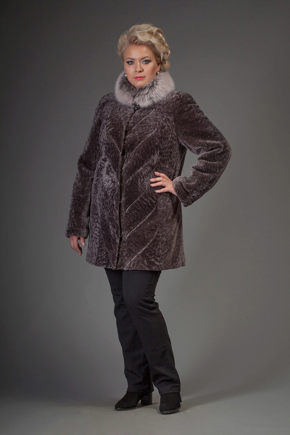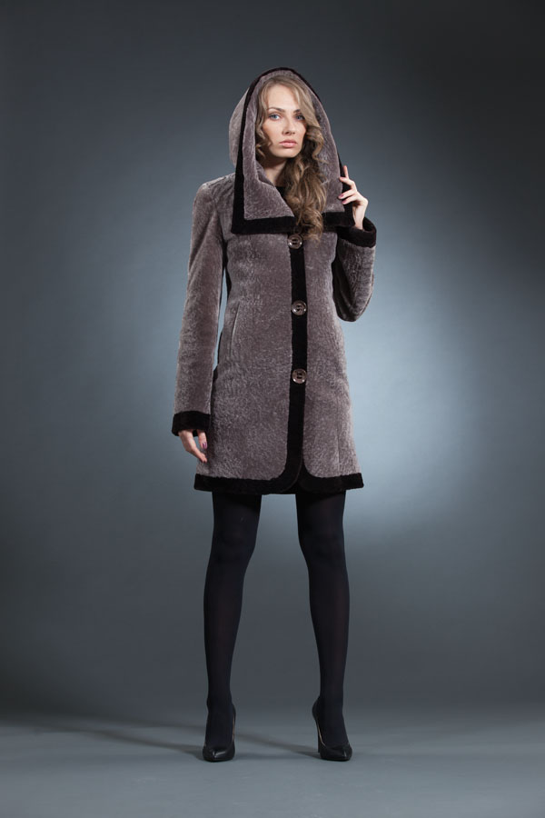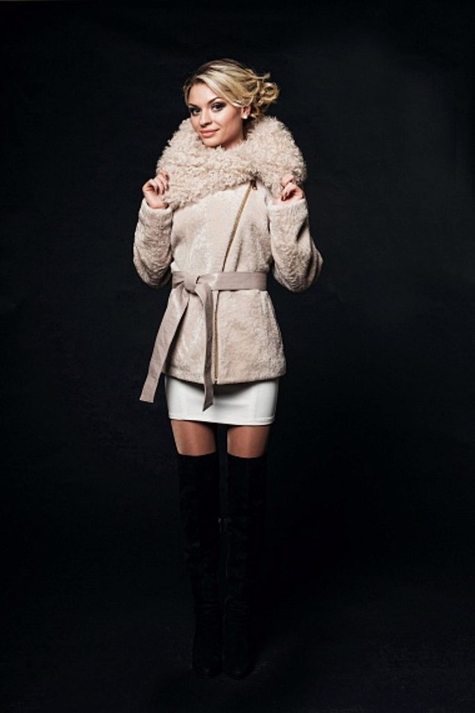 Astragan allows you to look feminine and slim to any girl. For women with curvaceous shapes, a properly selected model allows you to hide some figure flaws and excess weight, since the astragun’s nap is short and does not visually weigh down the image.