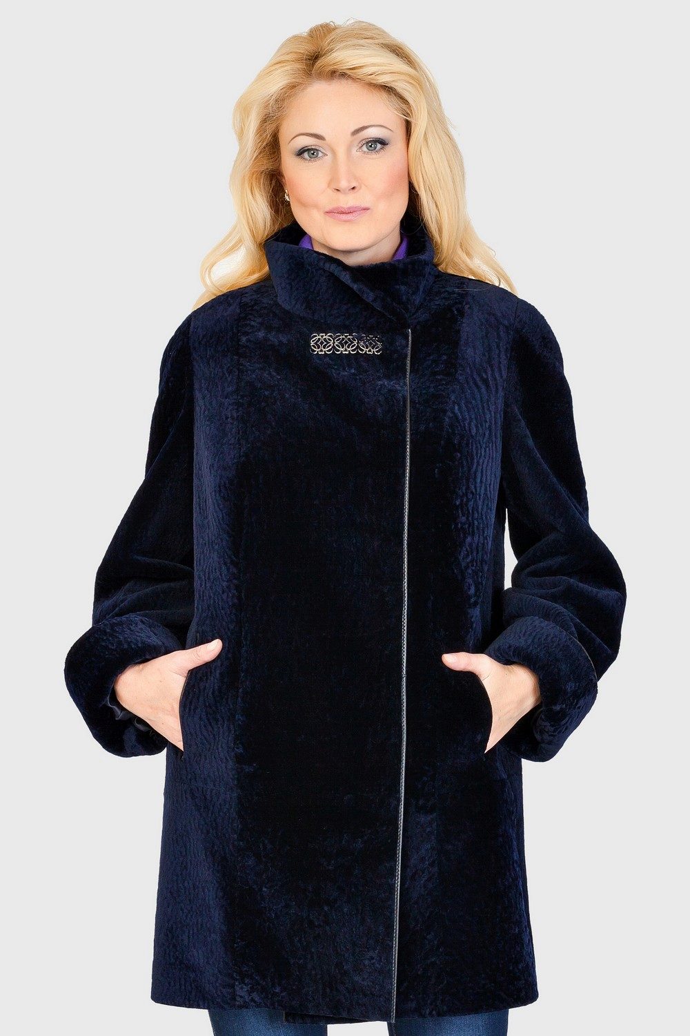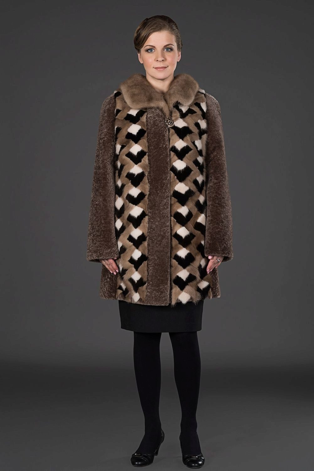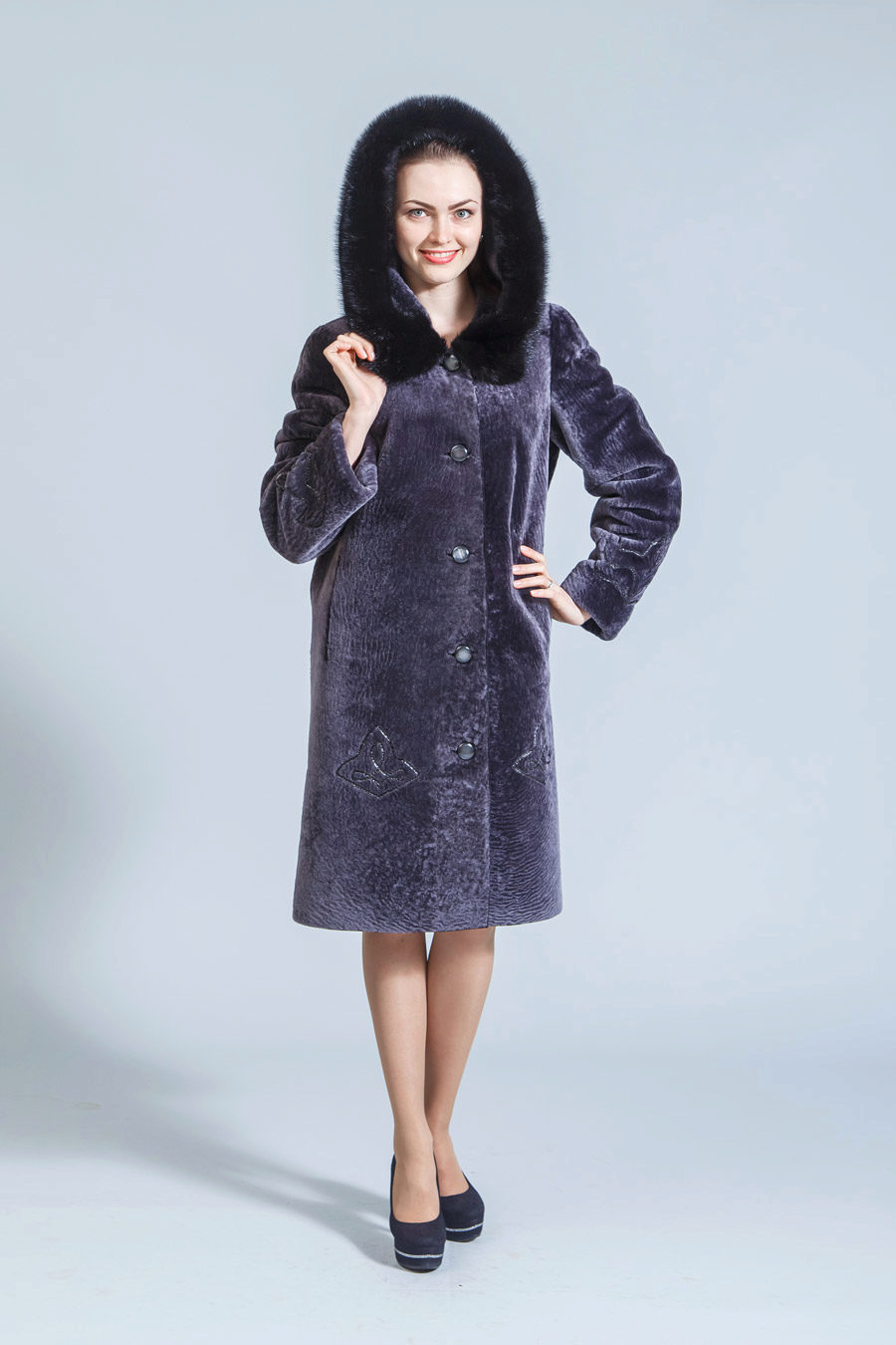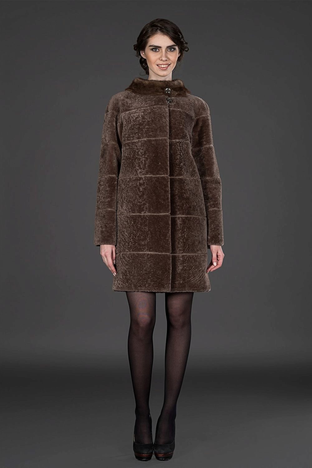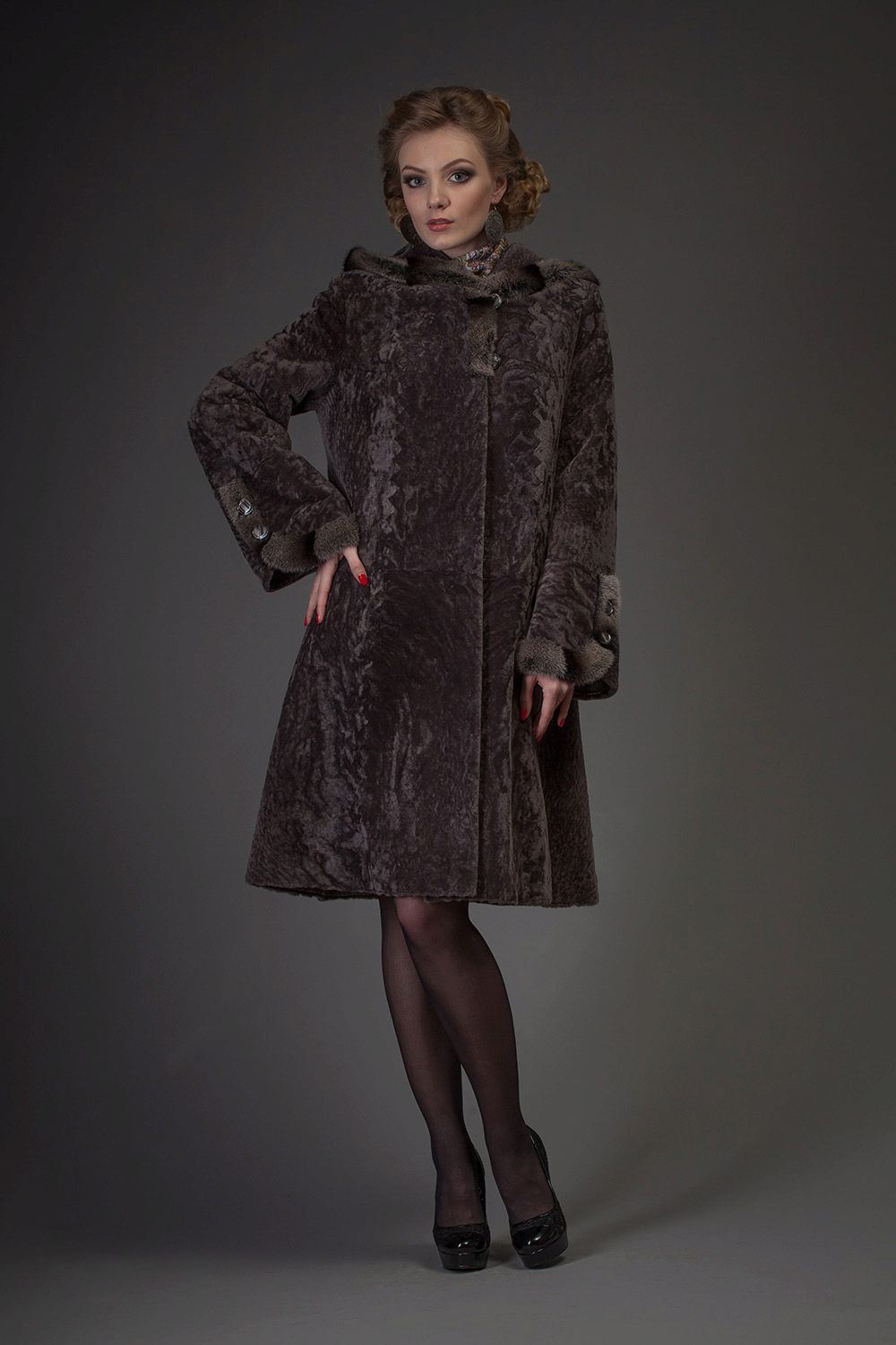 Astragan allows you to look feminine and slim to any girl. For women with curvaceous shapes, a properly selected model allows you to hide some figure flaws and excess weight, since the astragun’s nap is short and does not visually weigh down the image.