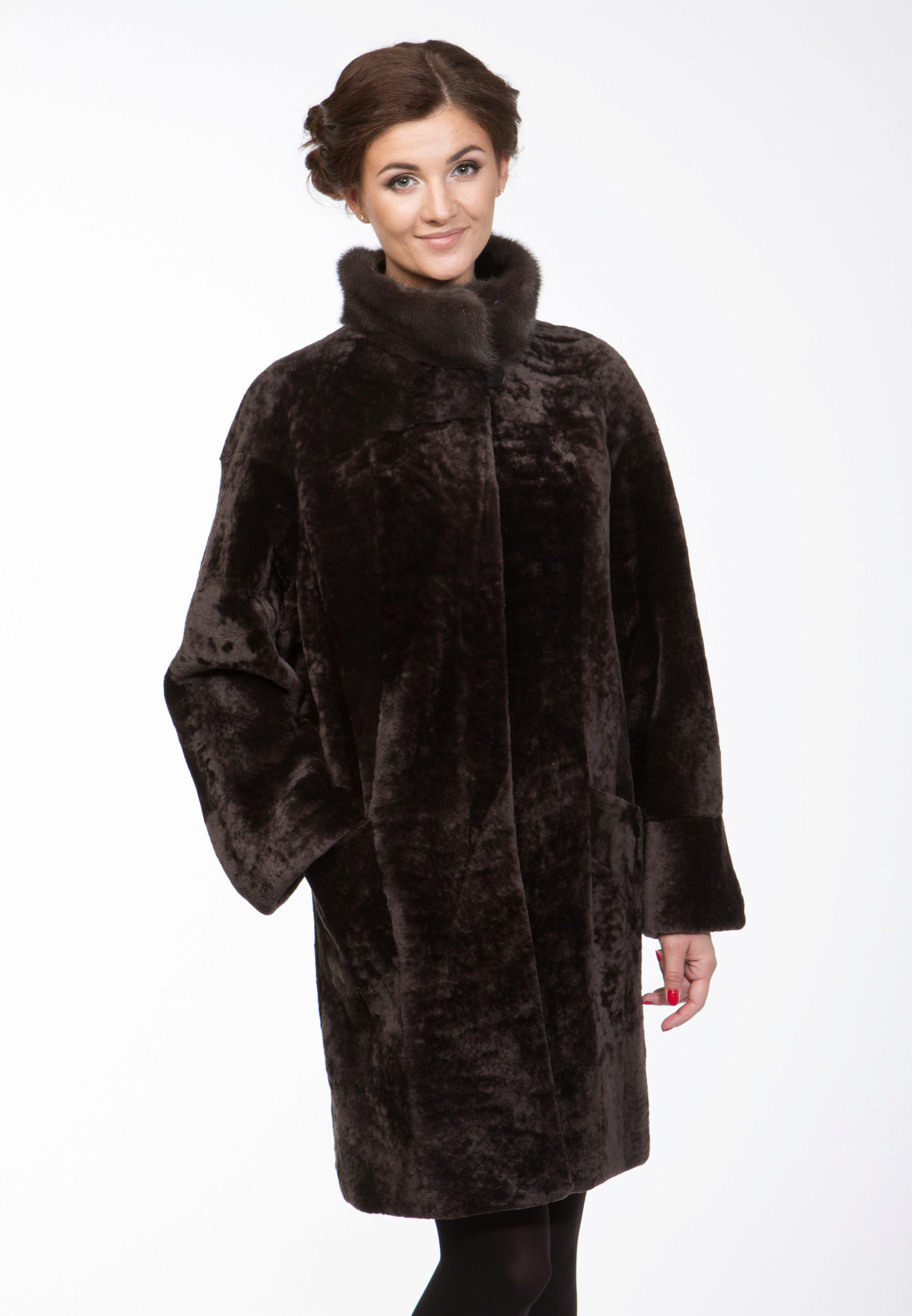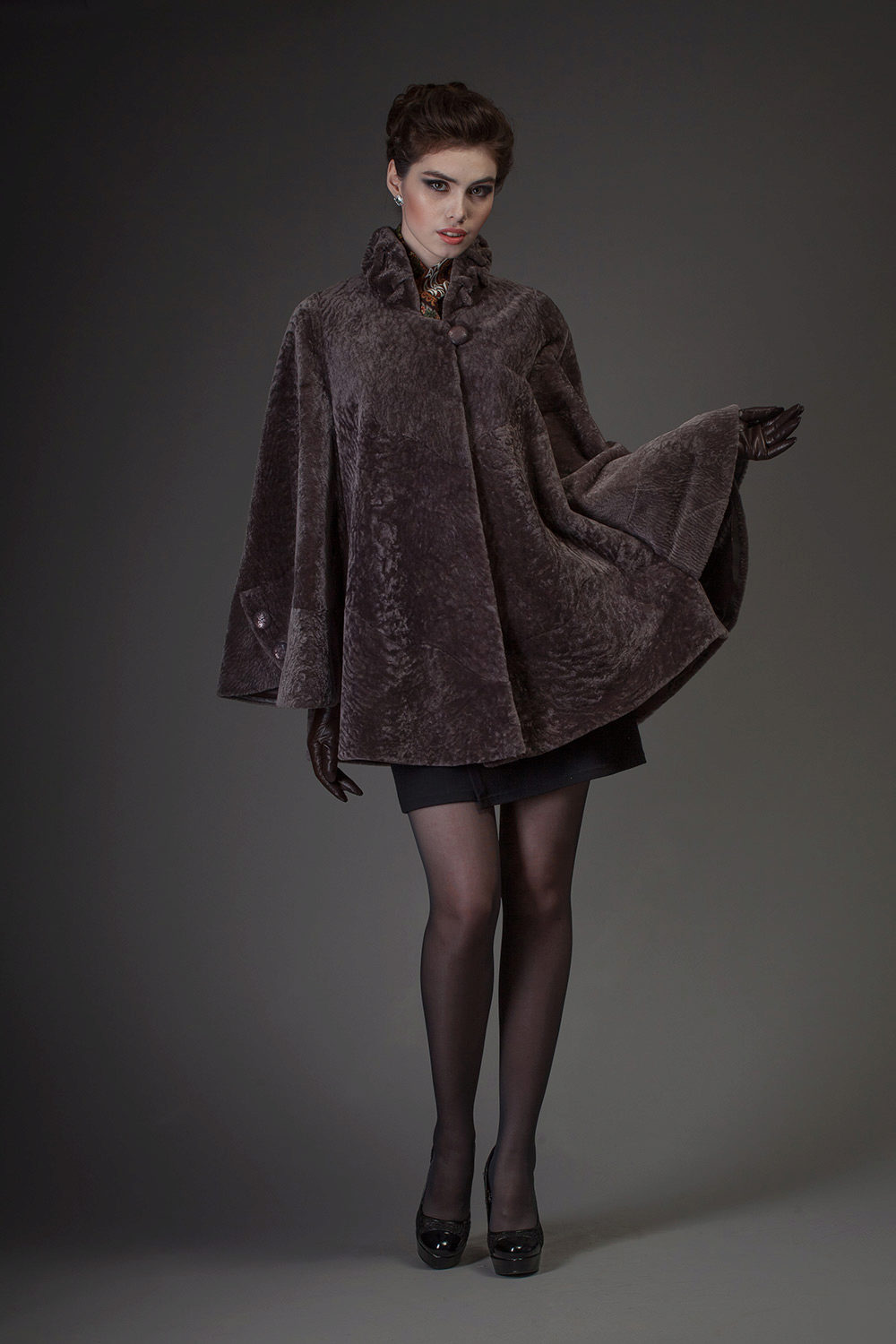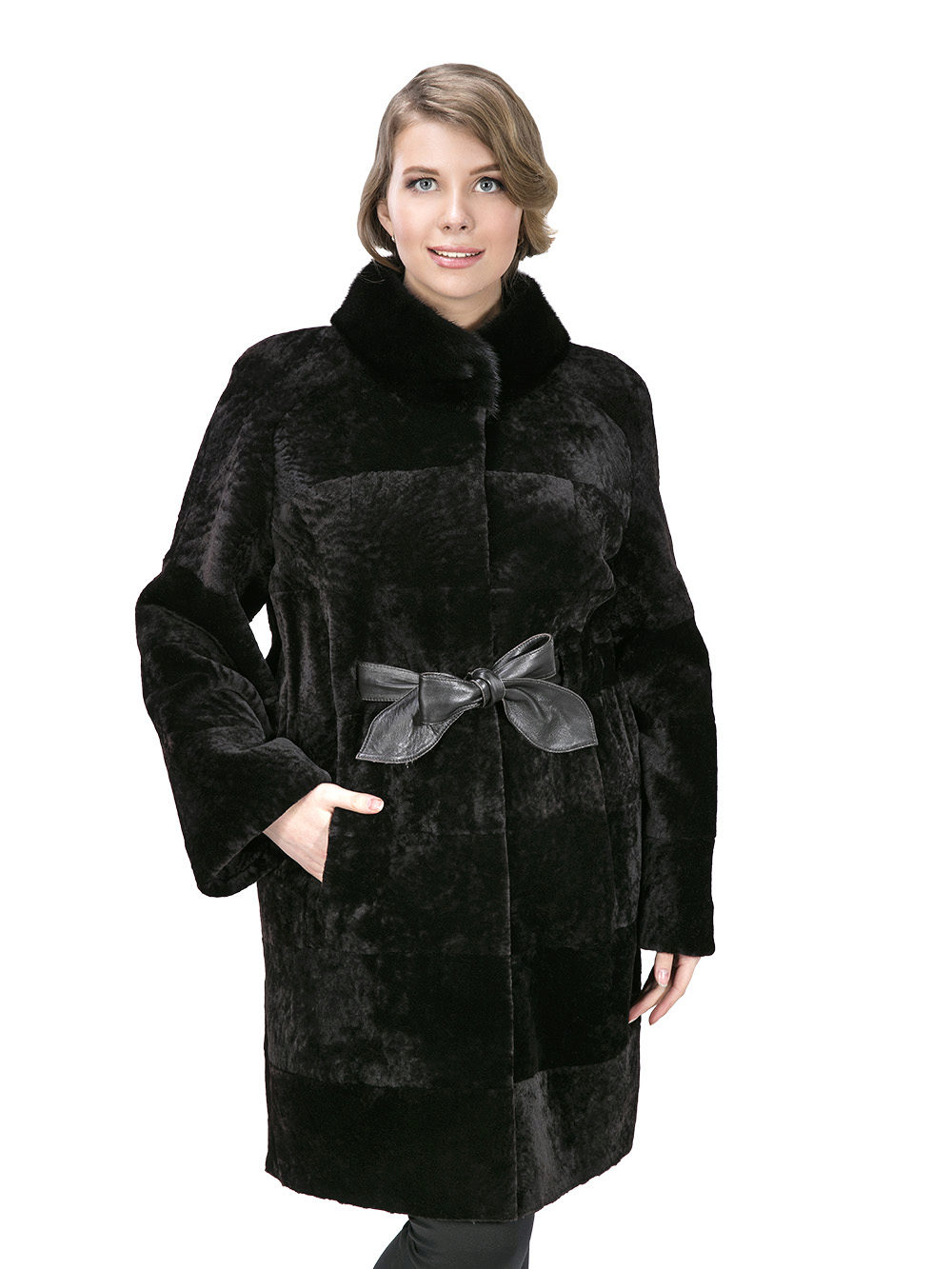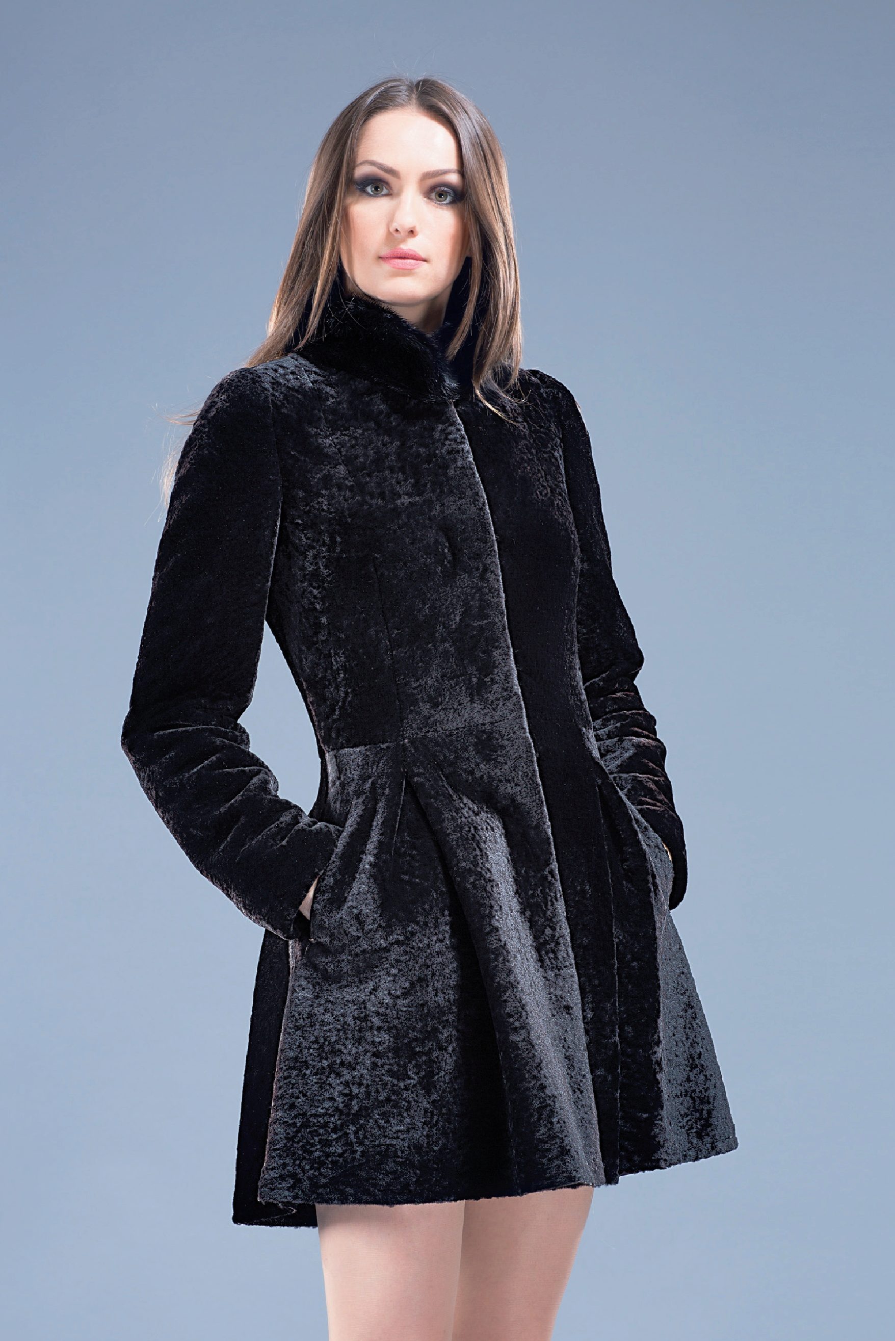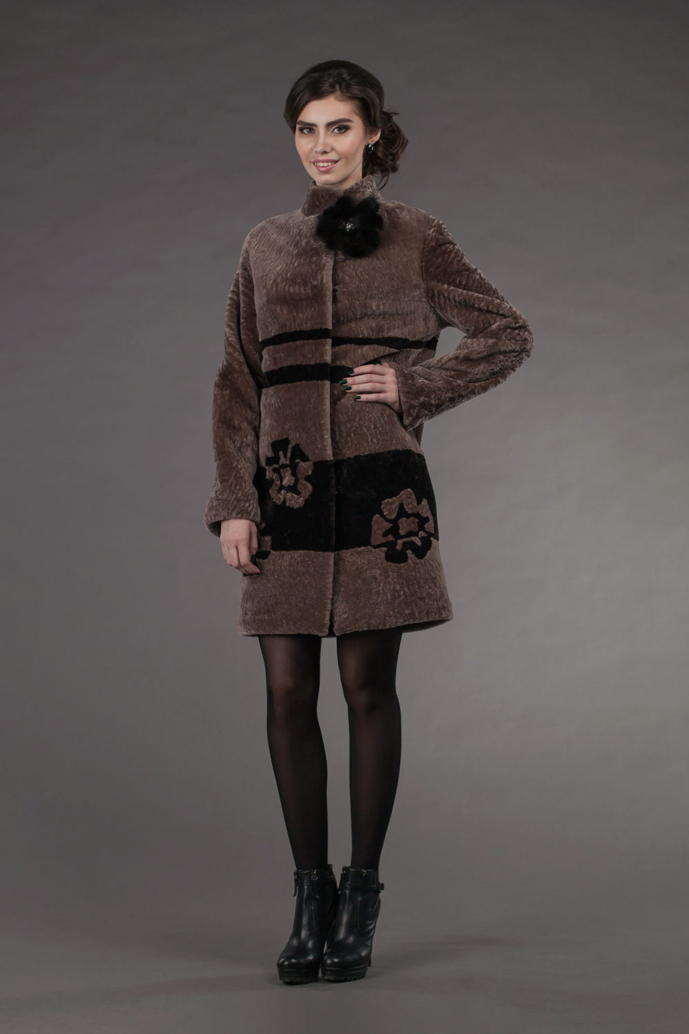 Astragan allows you to look feminine and slim to any girl. For women with curvaceous shapes, a properly selected model allows you to hide some figure flaws and excess weight, since the astragun’s nap is short and does not visually weigh down the image.